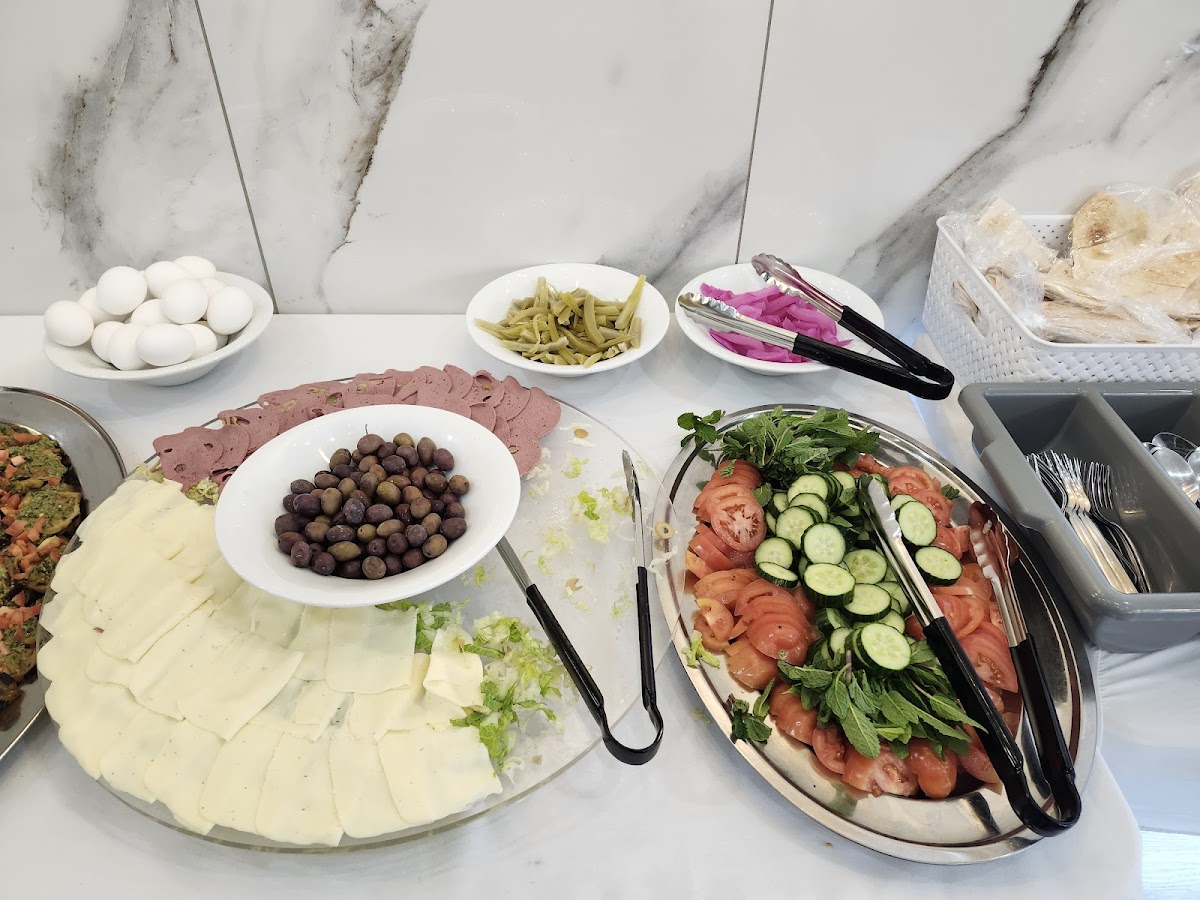 This restaurant proposes a big variety of Lebanese dishes and sweets. The interior is sweet. Every Sunday, they host a morning buffet. We had manakishes, meat pies, cheese pies, pickles, fresh veggies, cheese salad, omelette, hash browns, falafels, grilled eggplants, pita, bread, hummus, sauces, tea and coffee included. Everything was tasty. The restaurant has different ice creams, Dubai chocolate, a lot of sweets and cakes. They also sell some frozen food. Unfortunately, there are no name tags on their sweets, ice creams, and frozen products. There are also no price tags on all these products. That would be really helpful if the owner put name tags and prices on the shelves